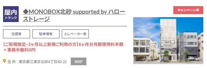 東京都江東区MONOBOX北砂(1.5帖/月額13,480円)の場合