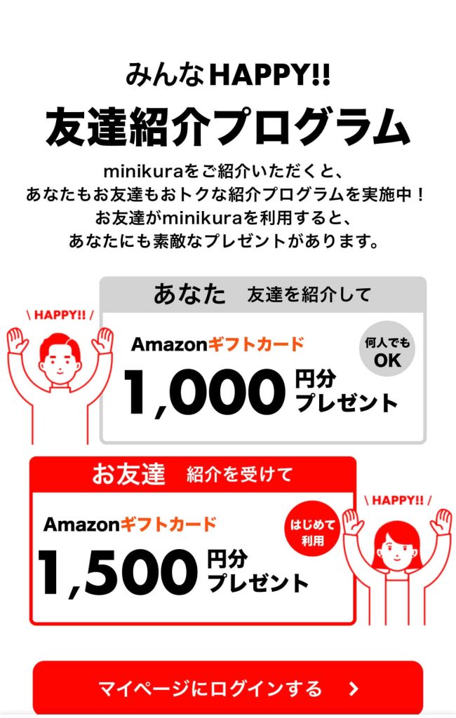 それなら、友達や身内の方に譲らずに、minikura(ミニクラ)の紹介キャンペーンでお得に預け入れできるようにしてあげましょう。